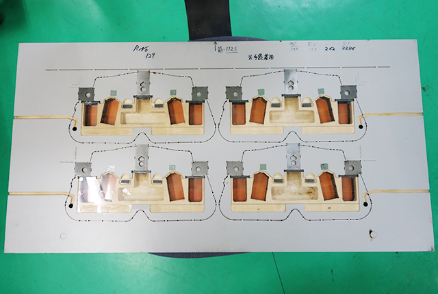 - 打ち抜いた複数の部品を接着加工などして製品化